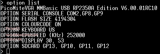 Using: PicoMiteVGA MMBasic USB RP2350A Edition V6.00.01RC10
