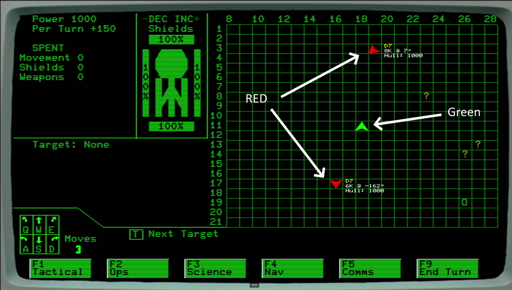 tgerbic said  The green ship on the green grid is a problem. If you are keeping the green grid, you should make the green ship some other color that contrasts, like the red ship does. It will make it easier to quickly track the green ships on the display.