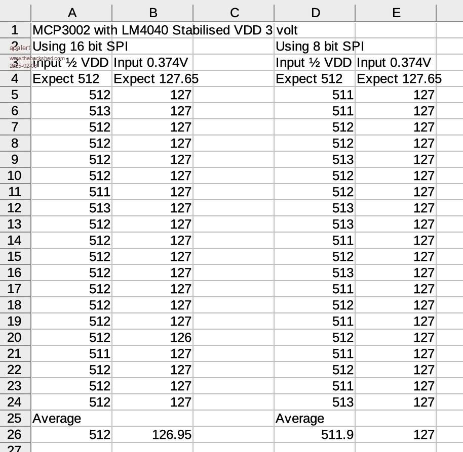 Initially results were +/- 3. However I stabilised VDD on the VDC at 3 volts with an LM4040 and forced Pico into PWM mode while reading, now we get +/- 1 as per spec sheet.