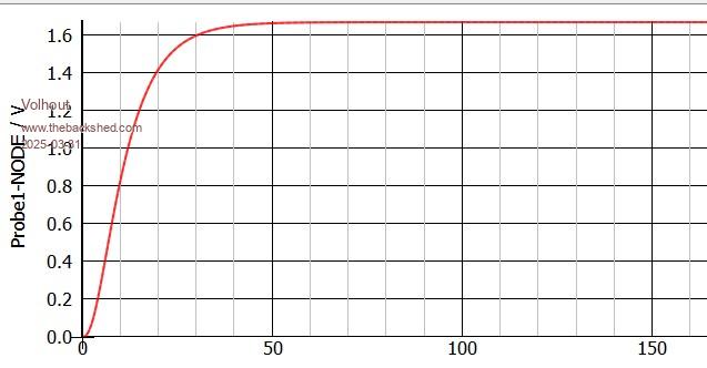 Switch-mode output stage simulated with a 1.5kΩ from a DOUT pin to a AIN pin and 1µF from AIN to ⏚.