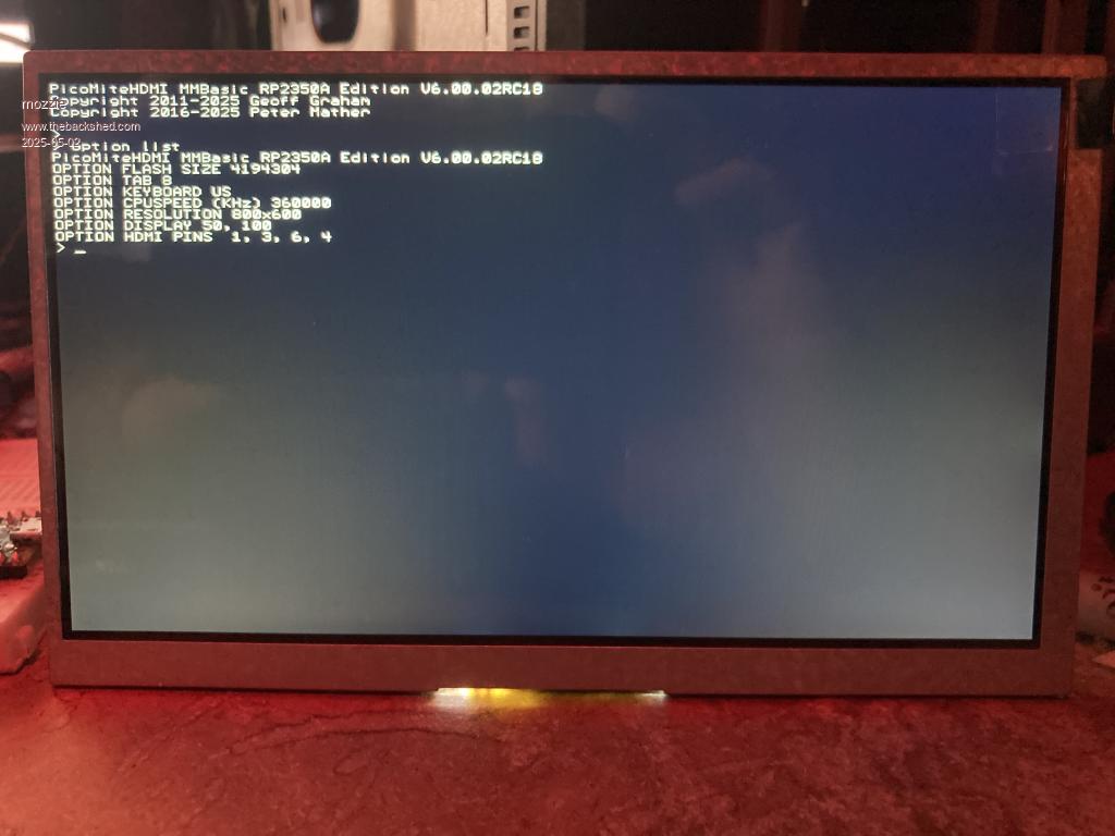 In theory one could make a hardware adapter to accept a Pico 2 and with a 40-pin plug on it to plug into the Waveshare socket. That would be an interesting exercise. A bit pointless as you can't have 1024x600 resolution though. . Edited 2025-05-01 22:05 by Mixtel90 Mick Zilog Inside! nascom.info for Nascom & Gemini Preliminary MMBasic docs & my PCB designs |