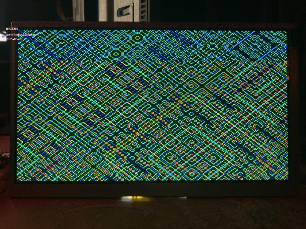 G'day IanT With a simple breadboard adapter these DVI screens work very well, the native 1024 x 600 resolution is a pain but they scale to whatever you drive them with. Can confirm 640x480,800x600,1024x768 and 1280x720 all work fine, haven't tried the others yet. Photos don't do the real thing justice, this is the 7" version. Regards, Lyle. |