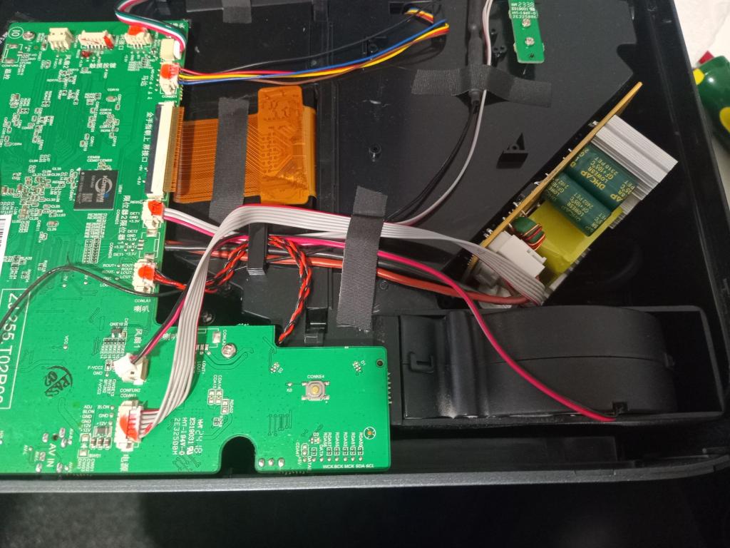 As we have TWO 12v wires and TWO ground wires from the main PSU, even when the projector is off, it can obviously happily supply at LEAST a couple of amps, to get the mainboard running, when it comes out of standby.