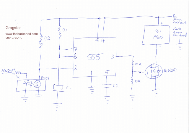 If the fans are 12V I see use for a 555 here. :)