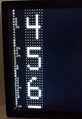 This is what the program font1.bas looks like, where you can see the DEC code on the left. Each character in FONT1 is 8 x 12 (width x height). ![]() font1.zip /Peter63 |