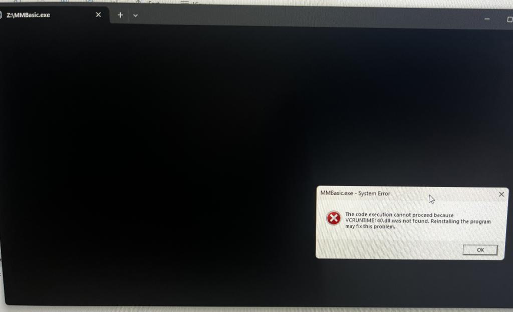 I have set up a new PC and the one I have on the old one just runs (MMBASIC.EXE) when I copy that file to the new w11 PC I get the following:
