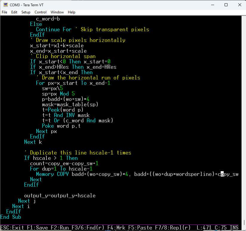 ESC:Exit F1:Save F2:Run F3/6:Find/r F4:Mark F5:Paste F7/8:Repl/r  L:471 C:75 INS