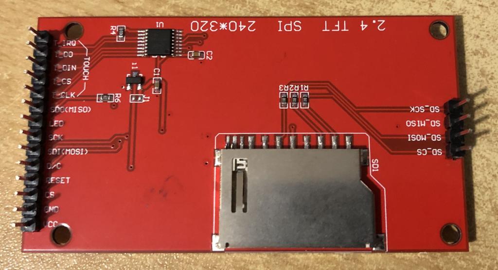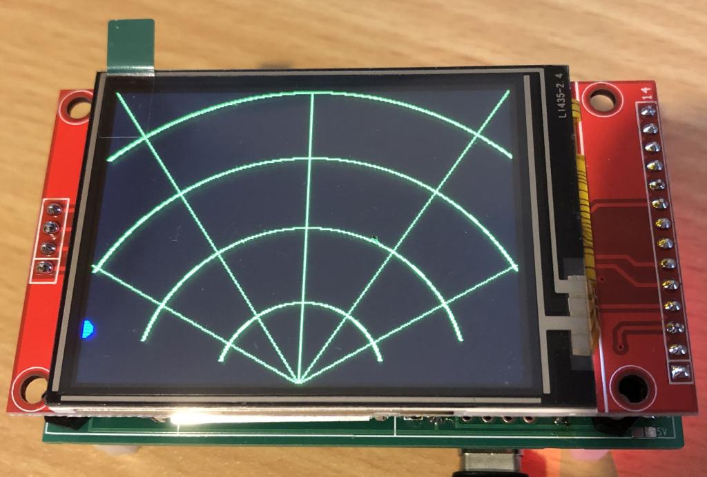 Now I've bought four more displays from AliExpress, which also use the ILI9341 display driver. They look like the display I'm currently using. However, it appears they're using portrait mode, even though landscape is selected. The small red dot on the left side of the display in the radar grid isn't red, as it should be, but blue.