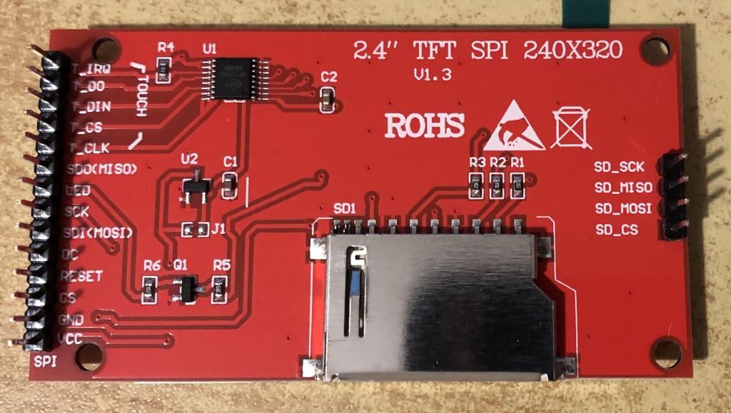 Swapped red and blue with pixel (0,0) at bottom left and (320,240) at top right so Hres and Vres are correct. SD card is at the bottom.