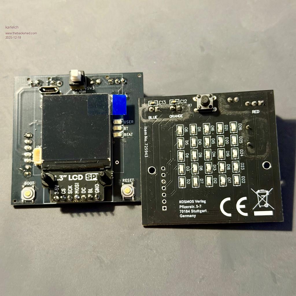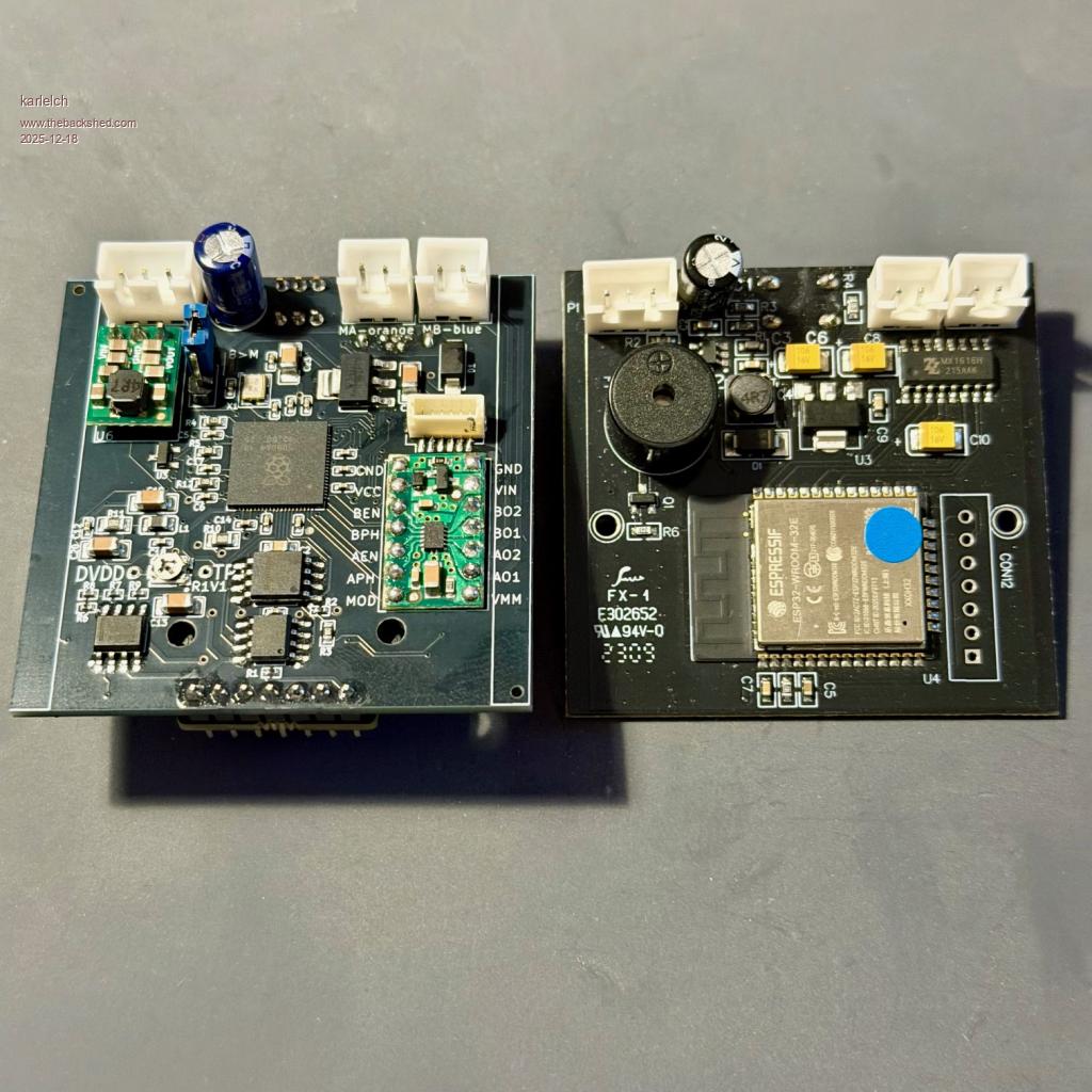Incidently, I recently got my hands on a robot kit (Miika). It's a bit too expensive to by it from the original company, but it is well made and the mechanics is nice - two motors turn and walk the robot in any direction. The idea is that you train an AI on your cellphone such that you can make gestures to your phone to steer the robot. I thought that is is a bit silly and that the nice kit needs MMBasic ... The original board (pictures below, right) has an ESP32, and LED matrix and a buzzer, as well as connectors for two motors. No options for adding sensors and such. My redesigned board (left) allows to connect two motors, I2C devices (sensors), and a Bluetooth breakout. I also added a 240x240 TFT display, a few LEDs and a USB connector. All controlled by an RP2350 (using Peter's core design). As soon as I tested all components, I'll continue building the robot and then the software ... Front: ![]() Back: ![]() Here is the new board sticking in one half of the robot: |