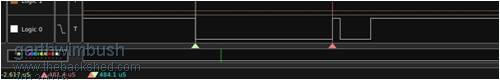 - Note that logic levels are inverted. There is a (roughly) 480us pulldown (which resets all the devices on the one-wire bus), followed by a presence pulse from the DS18B20. This picture is the same case after data logger wakeup, where the pulldown is more than twice as long (over 1ms), and the @@resetOneWire() function returns a failure, even though the presence pulse from the DS18B20 is still there.