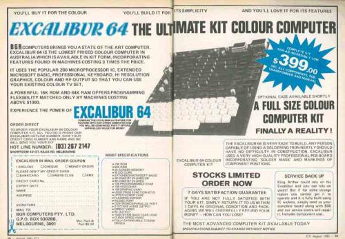 Nick, there was also the Excalibure 64. I think it was 84 that it came out. If it wasn't for incompetent marketing it was much more machine than the Microbee. Like many things, a great idea that was just a bit too late. If it was sold as a machine ready to run and before the IBM PC was too well established it could have been a much more popular machine. I remember the full page ads in EA. I found the marketing brochure for it the other day.