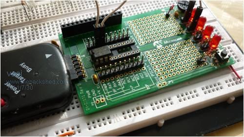 Note: This post wasn't intended as a true tutorial but only as an illustration of what can be done (well, a small part from what the program can do). Also, as I said, I didn't had a PICAXE but I used a 12F629 chip, along with my Pickit 2 programer and his testing board: