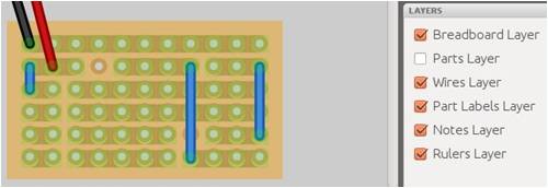 As you can see, in this area Fritzing still has a lot to do (veroboards and perfboards were added recently). First, it doesn't have yet the proper graphical components for these kind of boards. Second, it has problems in drawing the board at small dimensions (look at the offset on the strips from the bottom of the board).