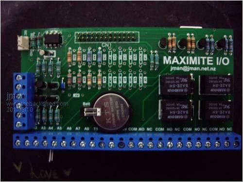 So I got PCB's made for my requirements This plugs into the Maximite (Header on Maximite is a straight type) My PCB layout skills are not the best but the boards work ok. Specs Real time clock 4 relay outputs 4 Digital inputs (Transistor) 10 Analog inputs 2 of these are setup for LM35 temperature sensors. Analog has divider just pick resistors to suit your input voltage I have 2 spare boards with real time clock chips (8563) and crystals should anybody want one @ around $20 NZD (This is pretty much the cost price) Regards John |