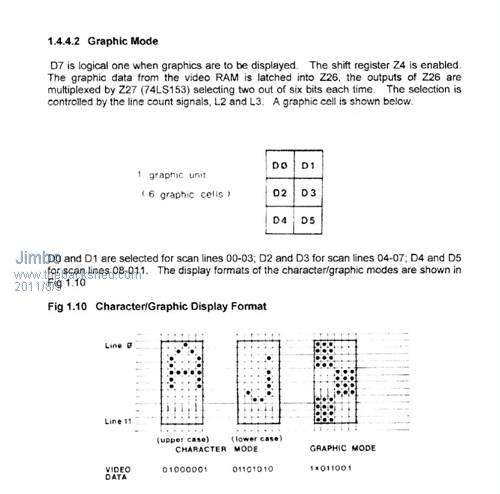 Geoff, I had a Disk Smith System 80, which had the same graphics character set. The graphics where generated via hardware using 6 bits), and here is section from the technical manual.
