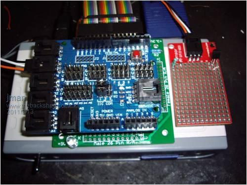 Then add an I/O shield and a proto sensor PCB (this makes it real easy to add senors and i/o bits)