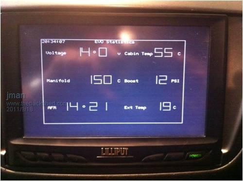 So the I/O PCB I made was primary for this project I fiited a car PC a while back so the screen was allready there. As this screen has the VGA connected to the car PC I have set the Maximite to composite video and with a quick button press I now have a display of the vitals courtesy of the Maximite Regards John |