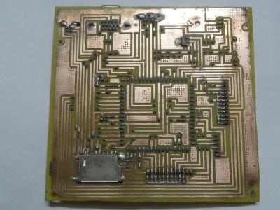 Here is my first attempt to a home-made single sided maximite board using the quick 'n' easy toner transfer method. It has some vias as expected but I think that is OK for a home-made design. It was built in under 2 hours including soldering and firing up the MMBASIC. It did not boot for the first time because I used capacitor "C5" as electrolytic. ITS VERY IMPORTANT TO USE A TANTALUM CAPACITOR FOR C5. Everything works as good as it was meant to be. Here are some pictures....