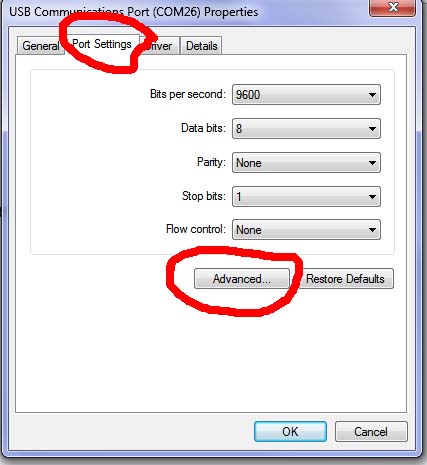 Hi Bob, Maybe COM3 is used as an internal device.... Try setting to a port thats higher (mine sets to com26) Go into Control Panel --- Device Manager ---- Ports ---- Do Properties on the relevent USB COmmunication Port and click advanced and select a port that it says is available (i.e. NOT in USE) Also check that the Port settings are Baud 9600 Bits 8 Parity N Stop 1 FLow None in the section just before you click `advanced' Regards, Mick Mick's uMite Stuff can be found >>> HERE (Kindly hosted by Dontronics) <<< |