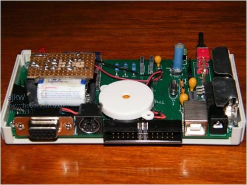 Bob, The speaker is a transducer speaker not a piezo, I think I got it at Jaycar, see AB3440. It wasn't very loud connecting it straight to the Maximite audio out so I had to replace the resistors in-between with links. Works ok but has a very variable frequency response curve. It certainly does add sound however. The driver board is not related to the speaker but is my RTC based on a DS1302 chip. You can also see the CR2 battery for it's backup supply. Works very well. I can supply more details if required. Cheers, Anthony. |
