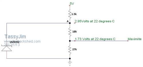 So how do you determine the voltage for the basic program? Do you just read across the downline side of the resistor and ground with the LM335 disconnected? And then use this voltage in the basic formula?
