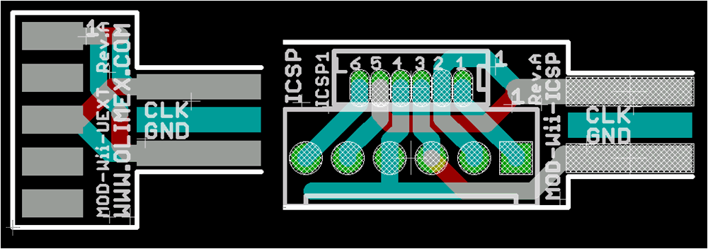 just to tell you that we have Wii to UEXT connector prototype it's very easy to do it look Here we just add UEXT connector on it, now Don suggested us to add ICSP connector layout too so we can use ICSP connector as joystick connector |