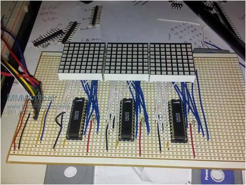 Uses 3, 8x8 led matrix's with 3 Austria Microsystems AS1107 chips. [Dip]