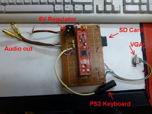 After made all holes and fixation , i finally put the whole thing in this box who was exactly the size i wanted. Then i started to connect all cables (they are allot !) and for get the power i just use the 5v output from the Hard Drive box ... he he he ... The 3.3v is made from the dev board then all was ok. And then ... Geoff <-- yea the 'Guru' ... is coming with a new maximite with colours , stereo audio etc !!! I was falling from my chair just to think about open the 'box' and change the connections , made a low pass filter for audio and add components to be able to have color graphics