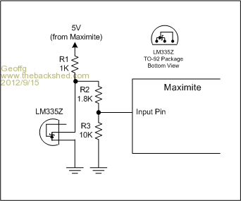 To check the maths At 60 degrees C the voltage at the LM335 should be 3.33V The voltage at the Maximite pin after the voltage divider should be 3.33 * 9850/(2020+9850) = 2.76 V BOILERTEMPCENT = Pin(4)*120.8 -273 =2.76*120.8 -273 =60.408 Jim VK7JH MMedit |