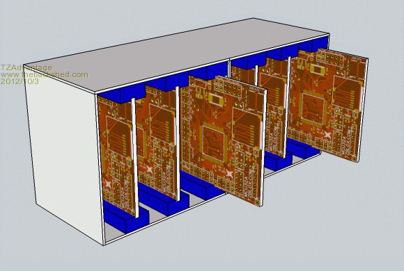 The main mcu board has a 38 pin connector that can be plugged into a 'bus'. A small backplane print will be available so that building a small extensible computer will be possible. A small rack is in development.