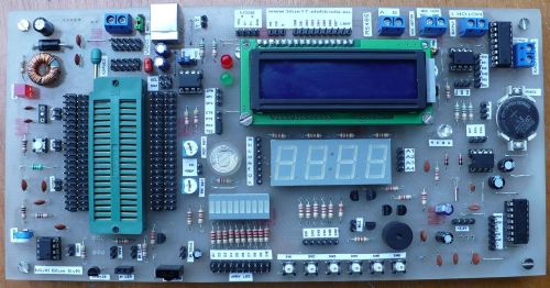 Is a DIY evaluation board, designed for AVR, PIC(including PICAXE), MSP (and I may add 8051 compatibles) microcontrollers. It have a ZIF 40-pin socket which is not physically connected to the PCB traces. Connections between microcontroller, power and peripherals are made with wires with female connectors on both ends. The only SMD component (although easy to solder) is MCP2200 from Microchip used as USB2Serial adapter.