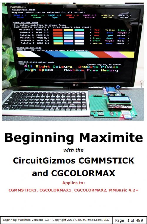 Wow. At 480 pages long this has become a book. Beginning Maximite 1.3 is available for download. If anybody has questions or comments, please bring them up here. I would like to know if there is anything missing that could be added to this .pdf There is a thank you in the book to this forum. I appreciate all of the feedback. Beginning Maximite