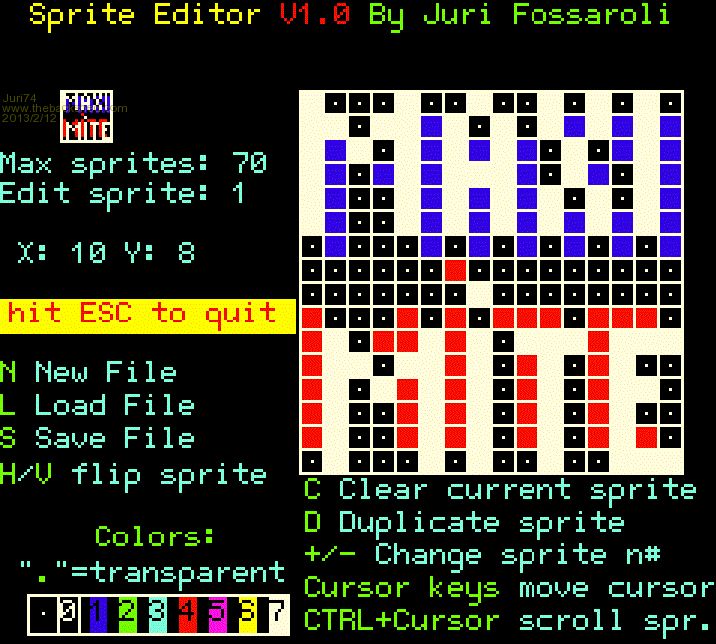 another thing: if you start and create a new file containing a lot of sprites (more than 40) you'll probably get an "out of memory error"... no problem RUN it again and it will work!! (maximite bug??)
