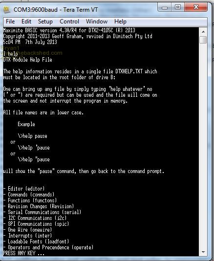 Hi Guy's, Here's a few pic's of the Help system as viewed in TeraTerm The Main Help Screen