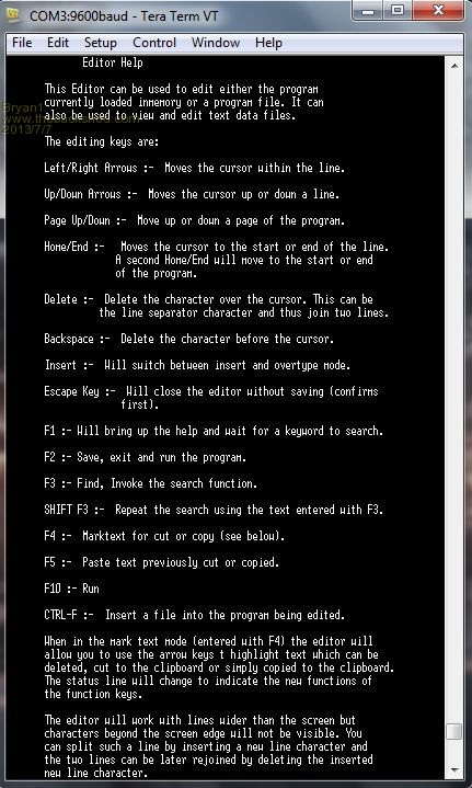 please little help needen, i can't use full screen editor with tera term because when using cursor keys it trasmit some escape codes to maximite, the problem is that the first escape code exit the editor (like hitting esc) if i press cursor keys in command prompt i will get [A[B[C[D codes... |