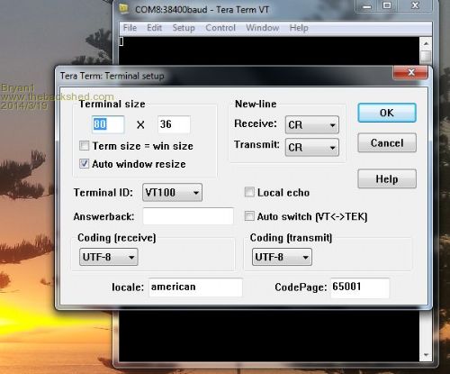 Ensure Baud rate of TeraTerm is 38400 and NOT 9600 which it defaults to!