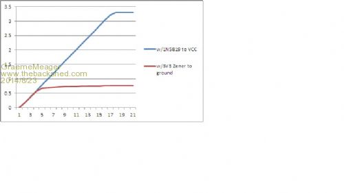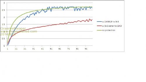 I then decided I needed to use 3v6 Zeners to try to get the drop off slope closer to the 3v3 max but this made little difference.