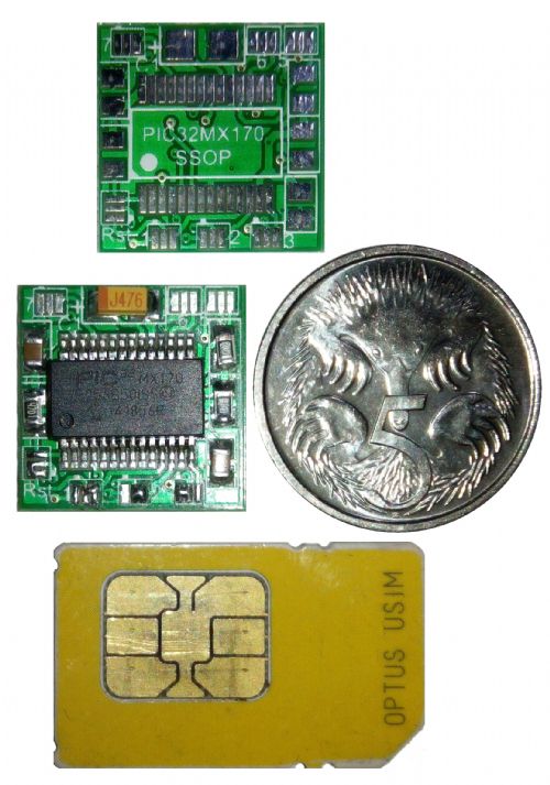 Anyway for what its worth here are the preliminary pictures of MuP-Mini with a 5c coin and a standard SIM for size comparisons..