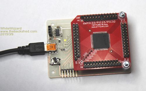 The carrier board is effectively a simple interface between a popular TQFP-100 Break-Out-PCB and a computer's USB port. The BreakOutBoard plugs into the Carrier Board and is held in place with a couple of screws to give the thin 0.8mm carrier a bit more 'rigidity'.
