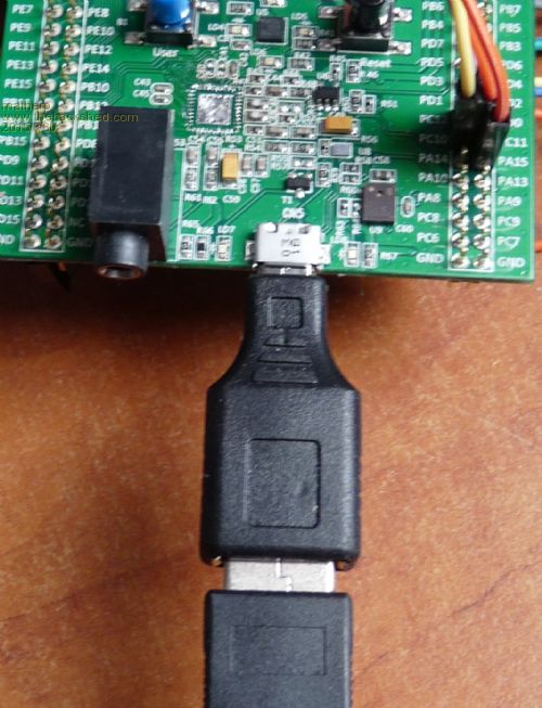 The syntax is : asciicode=USBKEY(timeout in msecs) e.g. dim integer i do i=USBKEY(1000) ' get a character or return 0 if more than 1 second elapses if i then print chr$(i) loop You will need a microUSB adapter to plug in a standard keyboard as in the picture. The program decodes all normal letters and numbers but does not respond to non-ASCII character such as "F1" etc. Pin 15, PC0 is no longer available as a general I/O pin as the STM discovery Board uses this pin to switch power to the USB port when in USB Master mode |