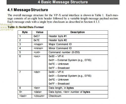 checksum = checksum ^ data; 'XOR all the bytes checksum = ~checksum 'invert value MM code DO CheckSumCal = CheckSumCal XOR ASC(MID$(Message, x, 1)) x = x + 1 LOOP UNTIL x = Len(Message) CheckSumCal = CheckSumCal XOR 255 'Invert the summed value If ASC(CheckSum) = CheckSumCal Then ValidMessage = Message Else ERROR "exit" End If To get this straight. INPUT$ is the only way to get the input from the serial port, and it comes in STIRNG format. Example, the device sends out HEX 0x21 which MM reads the string as "!". If I want to look for 0x21, I have to convert the string to a number (ASC), and then to HEX? Just seems like there is lots of steps. It's being sent as HEX, but gets received as a string, which then have to convert the string to a number, then to a hex value. I want to keep HEX as the document is written using HEX, so it's easy for me to follow along. Header1 = Hex$(ASC(serialMsg)) If Header1 = Hex$(&h21) Then .... MkII 44pin - v5.0 ColorMax 2 - v4.5 |