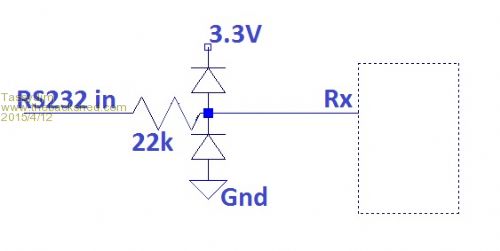 I can't seem to receive correct RS232 serial data, just garbage. I put a 22KOhm resister and clamping diode on the TX line as per MM Manual (pg. 70). Putting a scope on the line, it brings the levels down to +5.2V ~ -5.8V. The orginal levels are +6.4V ~ -6.2V. I thought following the MM manual would bring the levels closer to 3.3V. SPECS: CODE: DIM Storage$ DIM MessageLength OPEN "COM1: 57600, 256, SerialInt, 1, INV" AS #5 'start: ' Print "Waiting for data..." Storage$ = "" MessageLength = 20 SETTICK 500, ProcessMessages Loopything: ' Print Time$ GoTo loopything ProcessMessages: Print "Waiting for data..." A$=Retrieve$() IF LEN(A$) > 0 then Process(A$) IRETURN SerialInt: DO a$ = INPUT$(25, #5) 'user function Store to be written, only add to 'Store' when a$ contains data ' print a$ if a$ <> "" then b = Stores(a$) End If LOOP UNTIL a$ ="" IReturn Sub Process(message$) print "MESSAGE: " message$ ENd Sub FUNCTION Retrieve$() LOCAL Message$ LOCAL SeparatorPosition 'retry: IF (LEN(Storage$) >= MessageLength) THEN 'At least one possible message in storage 'Find the message separator 'SeperatorPosition = INSTR(Storage$,CHR$(13)) SeperatorPosition = INSTR(Storage$,"$") ' IF (SeperatorPosition <> MessageLength) THEN 'Corrupt message (too short or too long) at the beginning of the Storage 'Correct it by removing the corrupt part ' Storage$ = MID$(Storage$, SeperatorPosition + 1) ' GOTO retry ' ENDIF 'Extract the message Retrieve$ = MID$(Storage$, 1, MessageLength) 'Remove from storage Storage$ = MID$(Storage$, MessageLength+1) ELSE 'Storage contains less then MessageLength characters. No complete message available Retrieve$ = "" ENDIF END FUNCTION Function Stores(message$) LOCAL MsgLength ' MsgLength = -1; MsgLength = LEN(message$) IF (LEN(Storage$) + MsgLength > 255) THEN 'The error will stop program execution. Good while testing print Storage$ ERROR "Not enough storage available!" 'In normal mode set MsgLength to -1. 'This will inform the caller that the message is not stored. MsgLength = -1; ELSE Storage$ = Storage$ + message$ ENDIF Stores = MsgLength END FUNCTION OUTPUT: MESSAGE: ä ÿ ÿ kÿÿÿç~