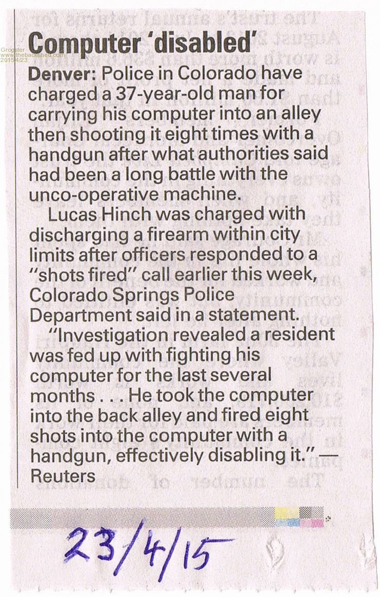 I would say: "Only in America", but I know that many of us have had similar feelings with many items of un-co-operative technology, and had we access to said firearm, then perhaps......