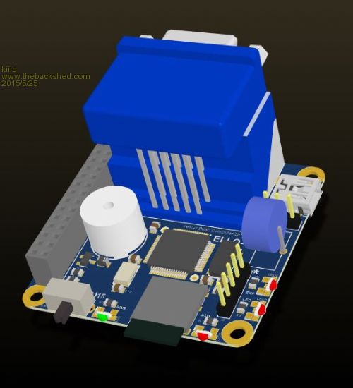 I have gone (again) for 16-colour graphics since this looks to me the reasonable amount of required memory vs what's available in the micro. However the design allows 1- or 8-colour configurations as well. Also switching from full size SD to micro SD in this board. Underneath the VGA connector there are two PS/2 ones - one is for a keyboard, plus two extra configurable A/I/O, the other one is CMOS UART and I2C (also configurable I/O). The board is powered from the miniUSB port, but can be configured to take external power as well.