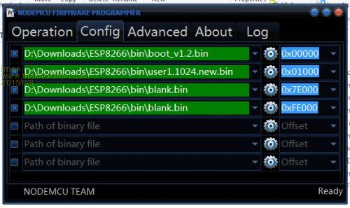I've been chasing around the NodeMCU site for any sort of User Guide for the ESP8266 'Flasher'. I couldn't find anything obvious so set it up anyway at 115K2 and pointed it to the files as per your config screen above. Pulled GPIO0 low and powered it and the two MAC addresses appeared immediately. I then hit the 'Flash" button and a couple of seconds later the ticked green box appeared at the bottom.