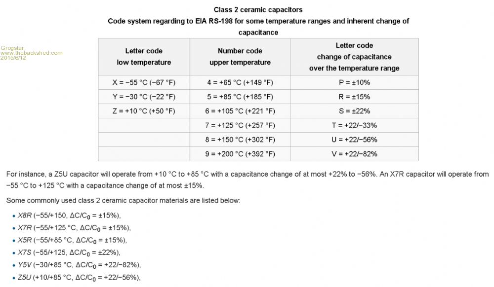 Note how if you were using something like Y5V, then the cap can vary in capacitence up to 82%!!! That is a hell of a lot!!! Yes, it is proportional to the ambient temperature the cap is exposed to, but that still represents a huge amount of change.