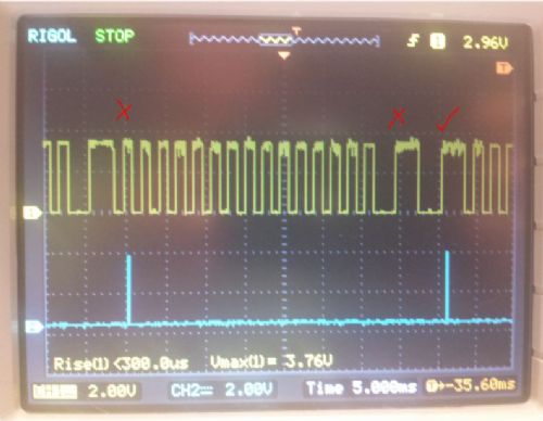 Attached 2 pics show it not reliable using TIMER, one rotation is correct and the other is off. I'm using another MM to generate the signal (so I can work at my desk and not in the garage).