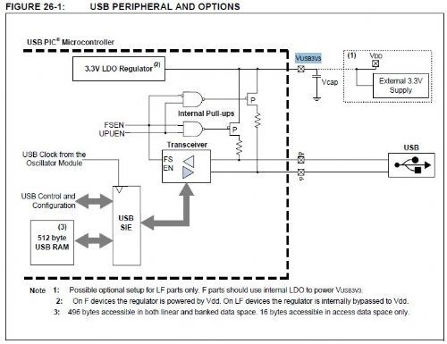 This caught me out at first as it is different to the PIC32MX250 Vbus connection. http://caroper.blogspot.com/ |