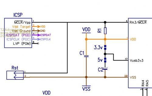 In this case it is solely for the F part that has the internal voltage regulator. If the 5v solder bridge is closed and i provide 3.3v to vdd would that then still works. Basically what happens is that the internal voltage regulator gets 3.3v on its input. I wonder if the USB circuitry in the PIC will still work correctly in that case. In the current schematic it is either the 5v bridge or the 3.3v bridge that is closed. I would like to remove those bridges and connect Vusb3v3 with a cap to gnd directly. If 3.3v or 5v is supplied to the Vdd you then choose the output levels to prevent the use of level shifters. I specifically choose the F part for that. Having no solder bridges would make use of the module easier as someone could close both bridges and damage the PIC. Microblocks. Build with logic. |
